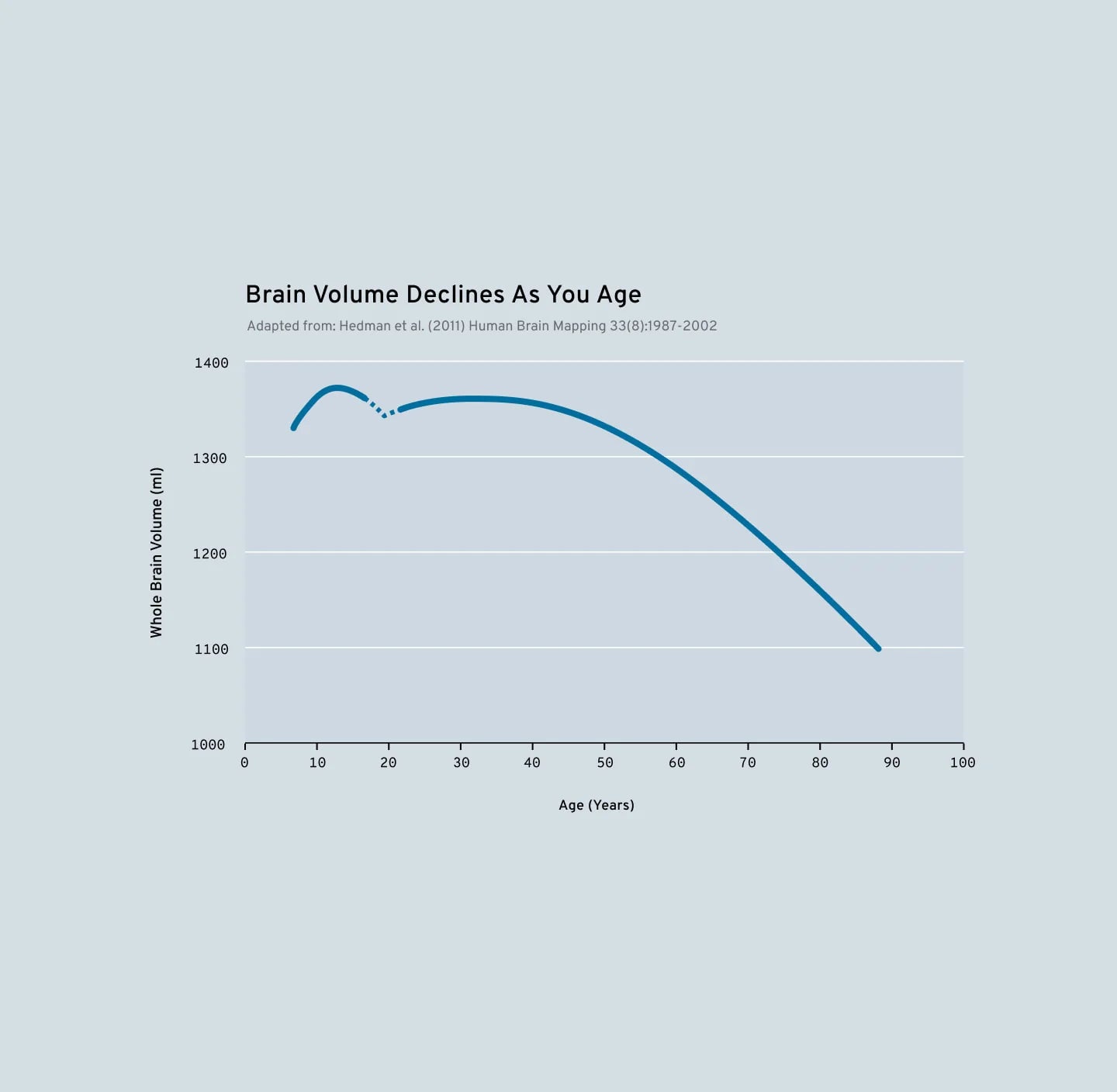 When your gray matter shrinks as part of normal aging, those functions can be significantly affected. Over your lifetime, you can lose up to 20% of your brain volume.